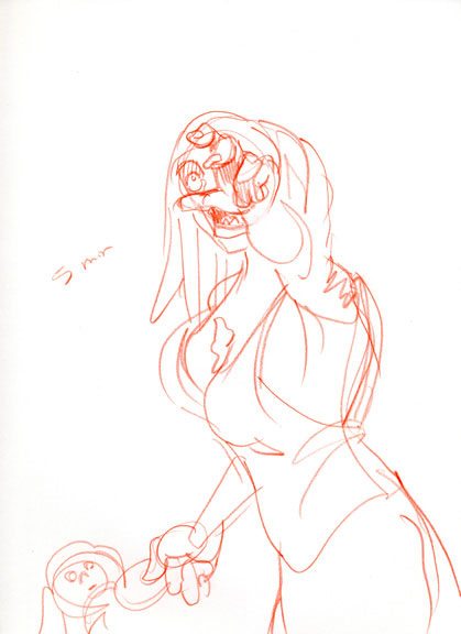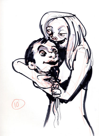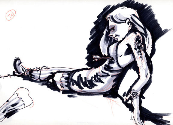 This time, the model was the wickedly lovely Marylin Monroach in full zombie makeup. I wish I’d snapped a pic, but hopefully these sketches will give you a sense of how great it was.